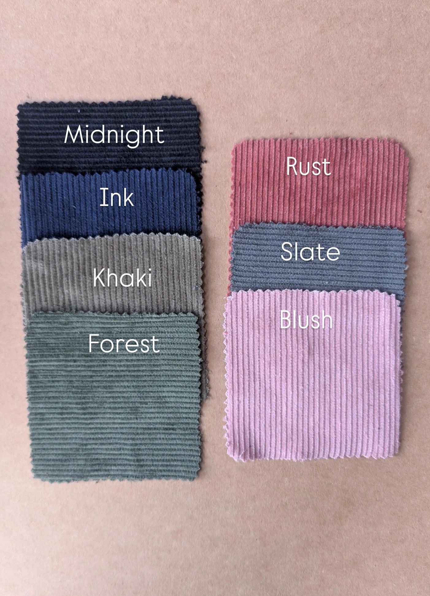 We are making these in 3 variations in all the colours from our cord range, so you can choose if you would like: