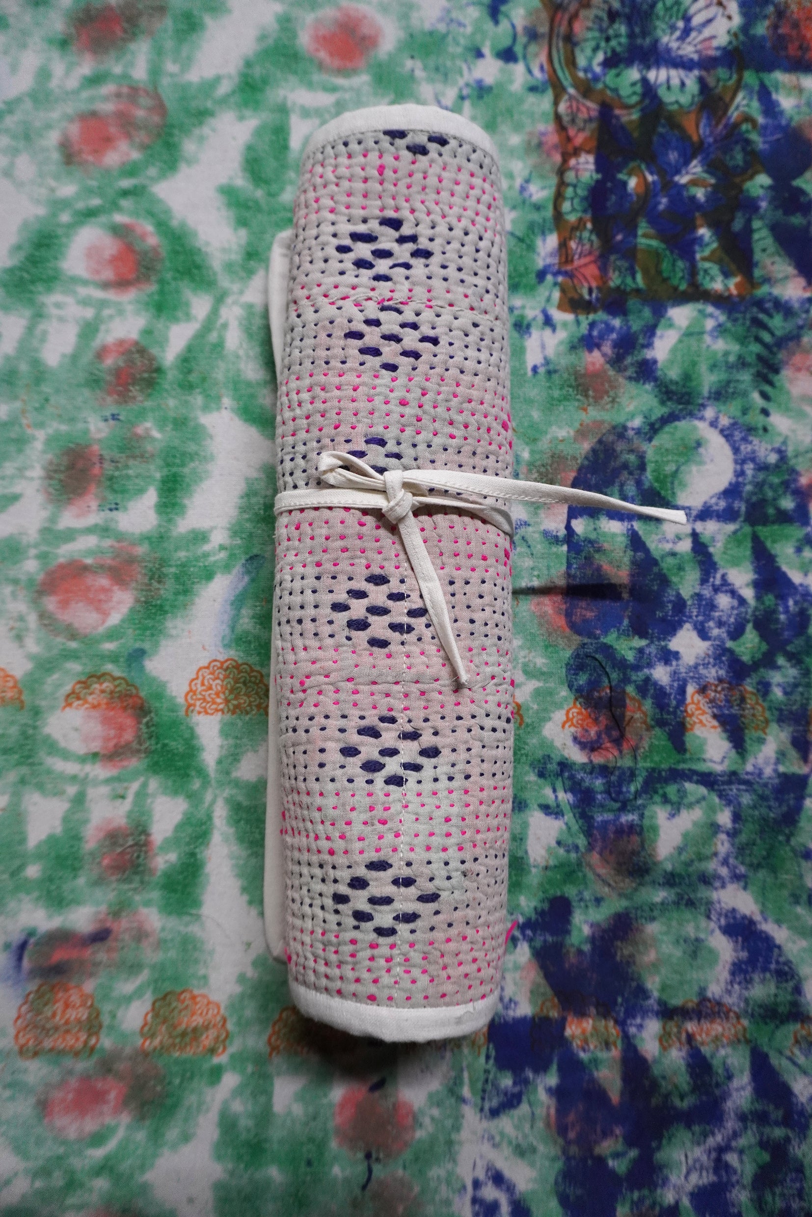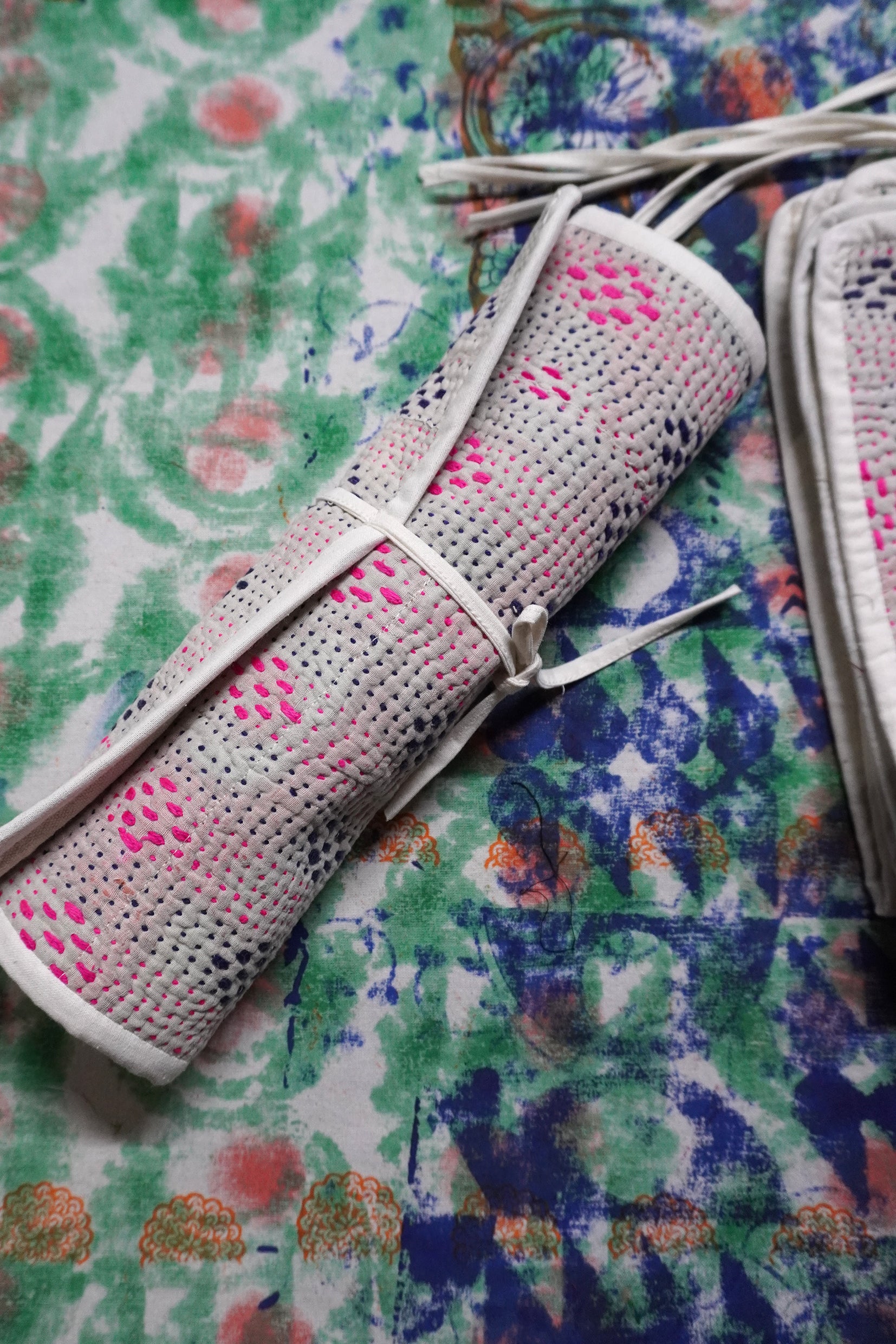 A kantha artist roll for storing your brushes and kit. Journally is part of my life, having watched my dad on many a holiday sketching and writing about our days. I wanted to create a special bit of kit for life's journey, a perfect gift for you and your artist.