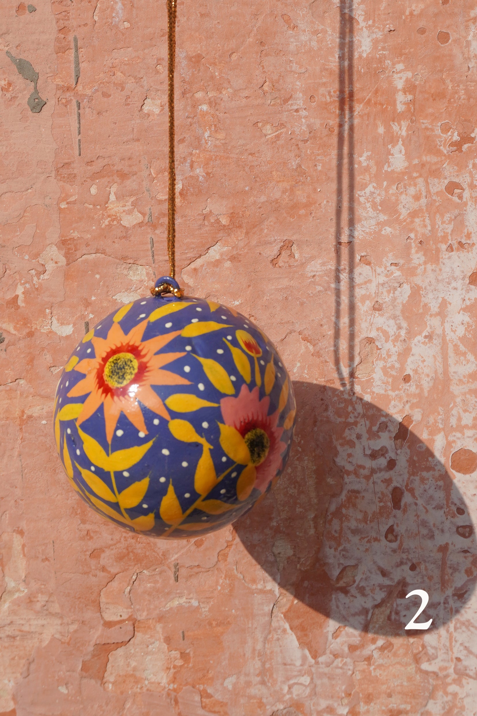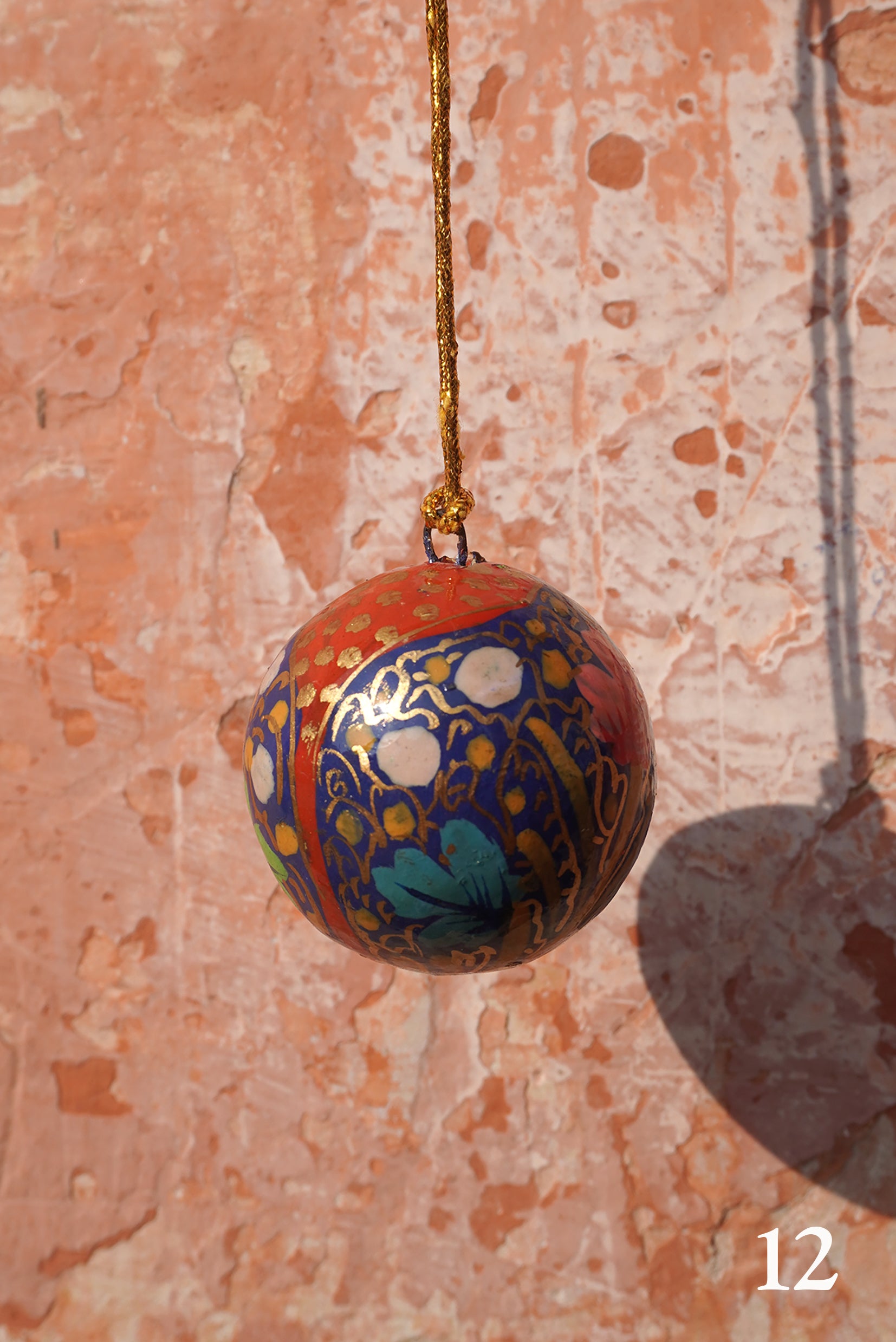 Hand-painted wooden Christmas Baubles from Kashmir. These are smaller size and will look beautiful on any tree. I only have one of each so a unique gift direct from the makers.